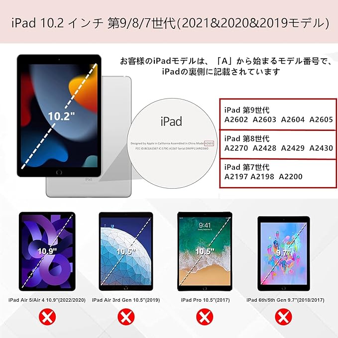 【対応機種】 iPad 10.2インチ 第9世代 2021(モデル番号:A2602/A2603/A2604/A2605)、iPad 10.2インチ 第8世代 2020 (モデル番号:A2270/A2428/A2429/A2430)、iPad 10.2インチ 第7世代 2019 (モデル番号:A2197 / A2198 / A2200) 専用スマートケース、カバー。(ご注意:iPadの他のモデルには対応していません、ご注文の際に、お手元機種の背面にあるモデル番号を確認をお願い致します。)