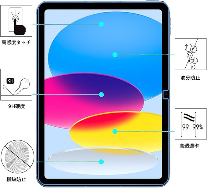 【優れた視覚体験】高精細強化ガラスフィルムは、画面の本来の色を存在しないかのように維持することができます。 高透明度は、元の高解像度の網膜観察体験を維持できます、iPad10 2022にクリーンでクリアな画面環境を提供します。