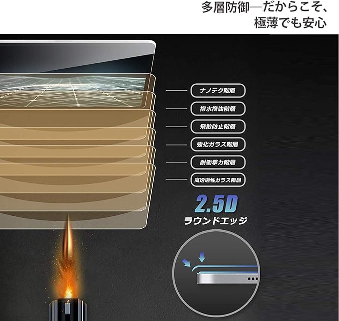 【高硬度&耐衝撃性】9H硬度の全面フルカバーガラスフィルムなので角割れやガラスのヒビ割れを防止画面保護を