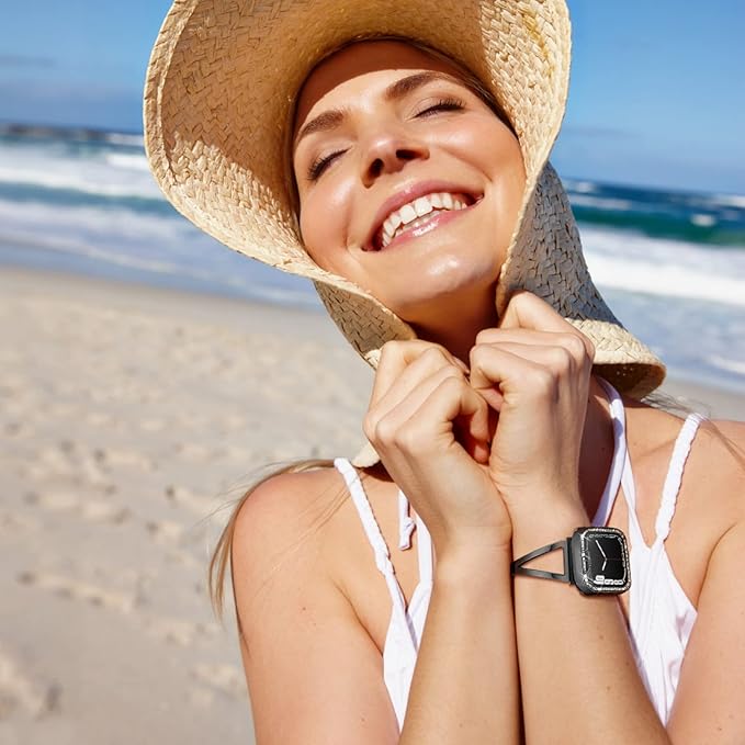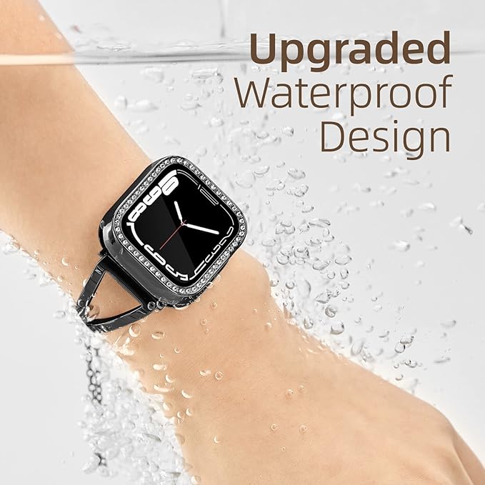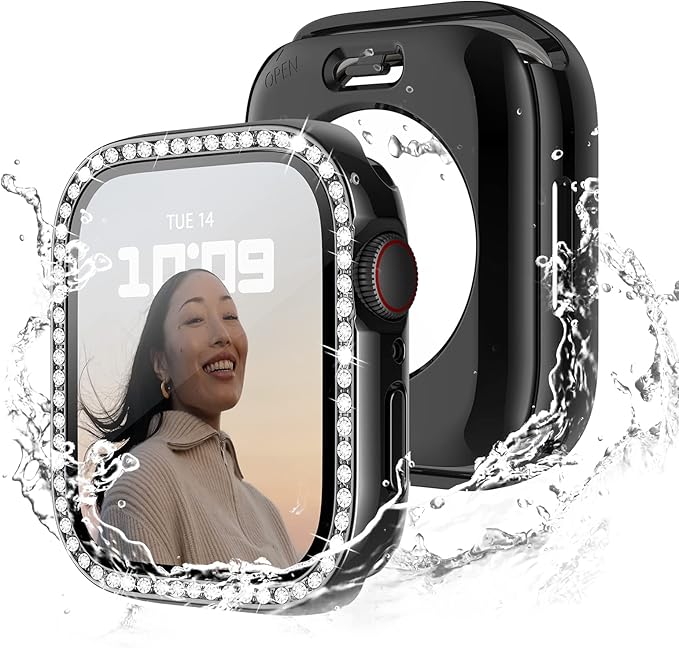 改良版・360度防水設計:Apple Watch ケースは特殊加工による防水機能があり、ガラスフイルムと本体の間に水が入りにくいです。お手洗いなどの水作業をするときも水浸入のストレスがないので楽に使えます。従来の非防水キラキラケースと比較して、改良後のケースはキラキラの可愛い外観と防水性能を両立させ、実用性を向上させます。