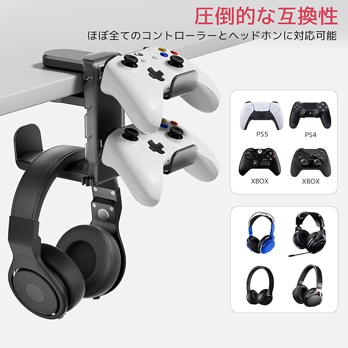 川の信芸 コントローラー/ヘッドホン スタンド 3台同時収納 省スペース ヘッドホンハンガー 360度回転式 ケーブル収納 安定性 滑り止め 幅広く機種に対応