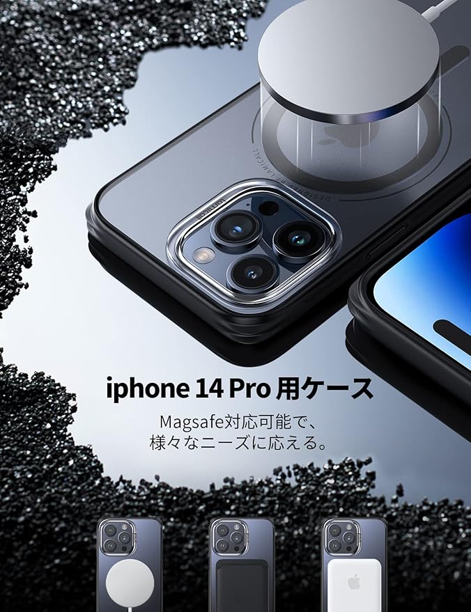 【四隅保護型エアバック】 Lamicall iPhone 14 Pro 用 magsafe 対応 ケース : 半透明 マグネット 搭載 ケース マグセーフ ケース アイフォン14 pro 用 カバー マグセーフ対応ケース 艶消し ワイヤレス充電 滑り止めエッジ 米軍規格 耐衝撃 超強磁力 黄ばみなし 耐久性 まぐせーふ対応 全面保護 落下保護 マグセーフ対応 - iPhone 14 Pro 用