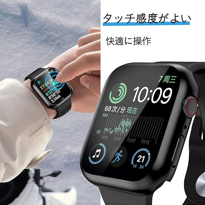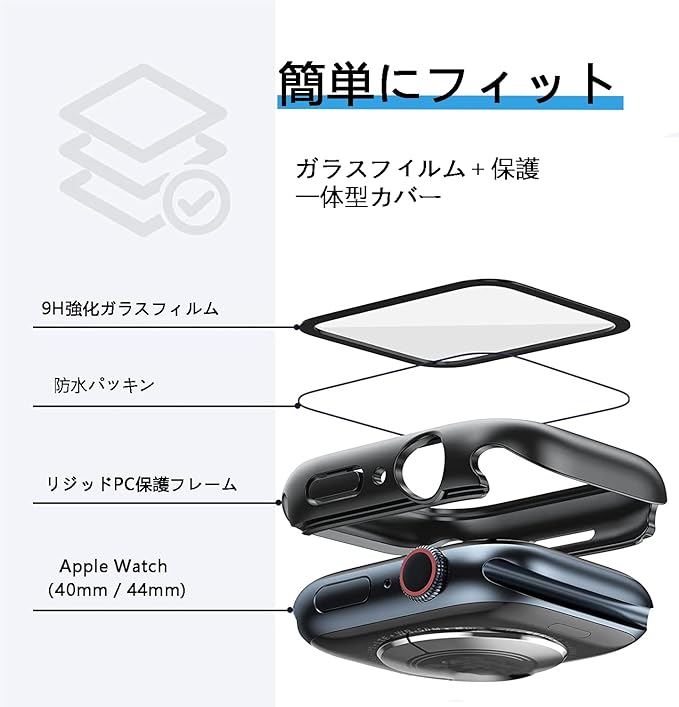 【耐衝撃】PC素材と硬度9H強化ガラスで作成された 一体型 apple watch カバー 40mm。360度で腕時計を落下衝撃や傷から全面的に保護、apple watchを常に新