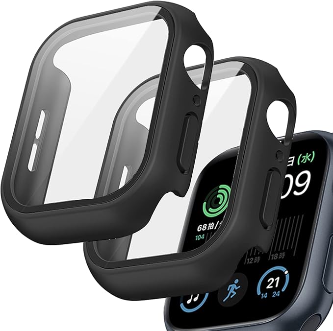 【2個入り】FALSAD Apple Watch カバーSeries10/9/8/7/6/5/4/Se2/Se 対応アップルウォッチ ケース 46mm 42mm 40mm 44mm 45mm 41mm, 防水PC素材とガラスフィルム一体型 iwatch 保護カバー, 耐衝撃 超薄型 強化 軽量 9H硬度 高透過率 全面保護(40mm ブラック)