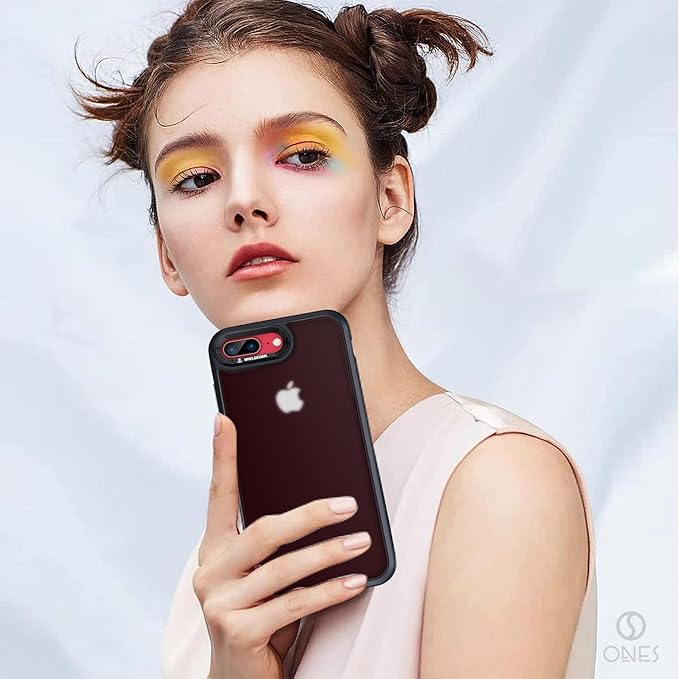 ONES 艶消し iPhone 8Plus / 7Plus ハードケース 【 強化レンズ保護、合金ボタン、エアバッグ 】 米軍MIL規格 超耐衝撃 【 黒?衝撃吸収シリコンバンパー ? 半透明?マット感?強化PCガードボード