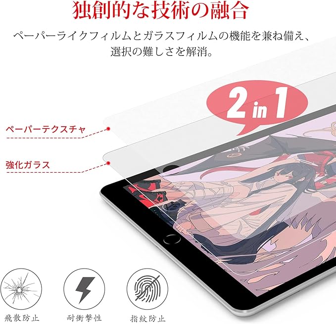 【2-In-1ガラス&ケント紙】Papered Glass保護フィルムはペーパーフィルムと強化ガラスフィルムの長所を合わせて独創的な新製品です。表層は日本からの紙感材料を採用し、紙に描くような感覚を提供して、同時に底層の高品質ガラスフィルム材料は、端末を落下、衝撃によるスクリーンに保護すること出来ます。BERSEM iPad 9世代 フィルムはお客様のニーズを満足して、選択の困難を免除します。