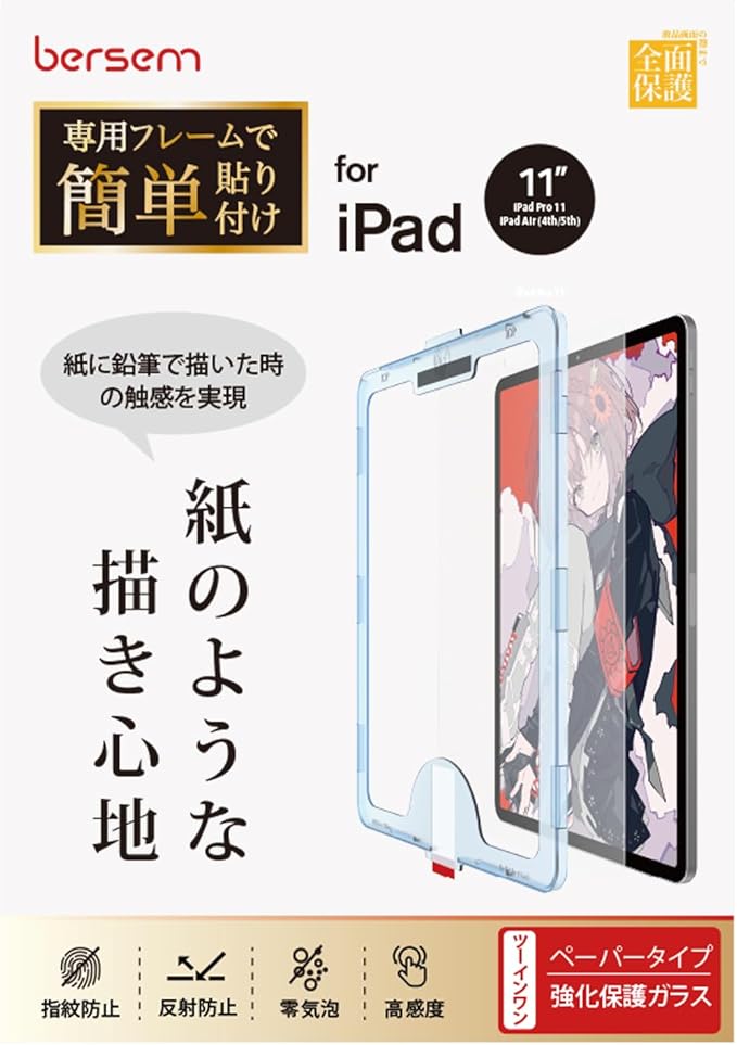 BERSEM ガイド枠付き ガラス&ペーパーライクフィルム iPad Air 第5世代(2022)iPad Pro 11インチ(2022/2021/2020/2018年)iPad Air 第4世代(2020)用 【紙のような描き心地】【強化ガラス保護】【反射