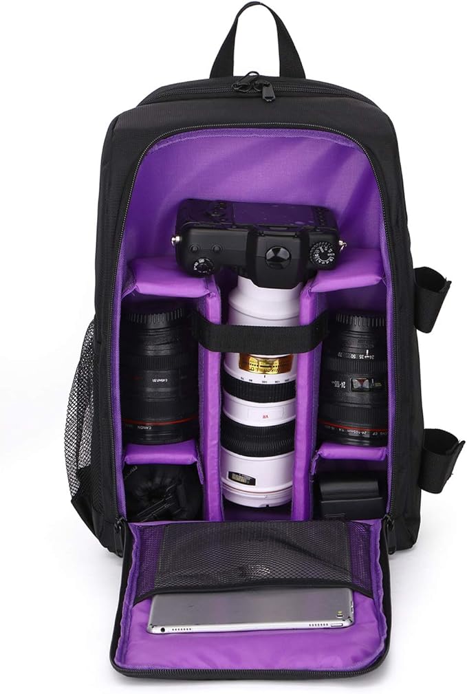 カメラリュック カメラバッグ カメラバックパック プロ級 一眼レフバッグ カメラバック 登山 パソコン収納スペース付き 三脚運搬 撥水 耐衝撃 アウトドア撮影 適用機種Canon、Nikon、Sonyなど 中は紫