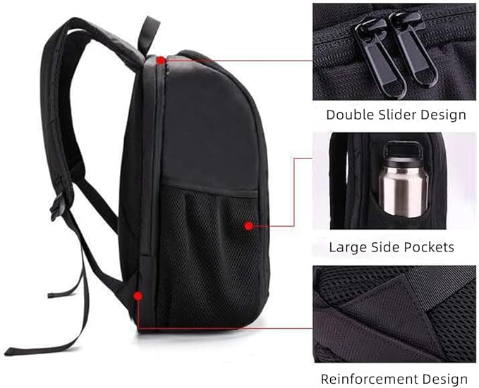 15.6インチまでのノートパソコン専用収納スペース付き、SDカード充電器とその他のアクセサリーポケット、両側小物収納ポケット、三脚固定用ベルト付き。