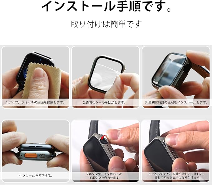【高透過率・高感度タッチ】ガラス部には薄いガラスを採用し、透明度が高く、Apple Watch本来の美しさを損ないません。アップルウォッチ本体にフィットし、つけている感覚が少なくアップルウォッチ本来の快適なつけ心地を再現、従来のタッチセンサーの感度を保持しています。ケース内側には特別加工し、曇りや虹色を防止でき、いつも画面をクリアーに保ちます。