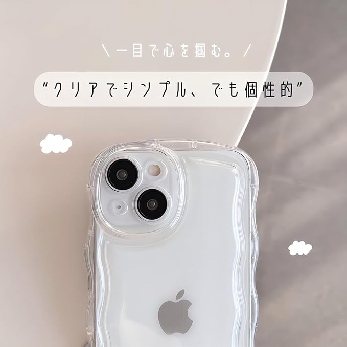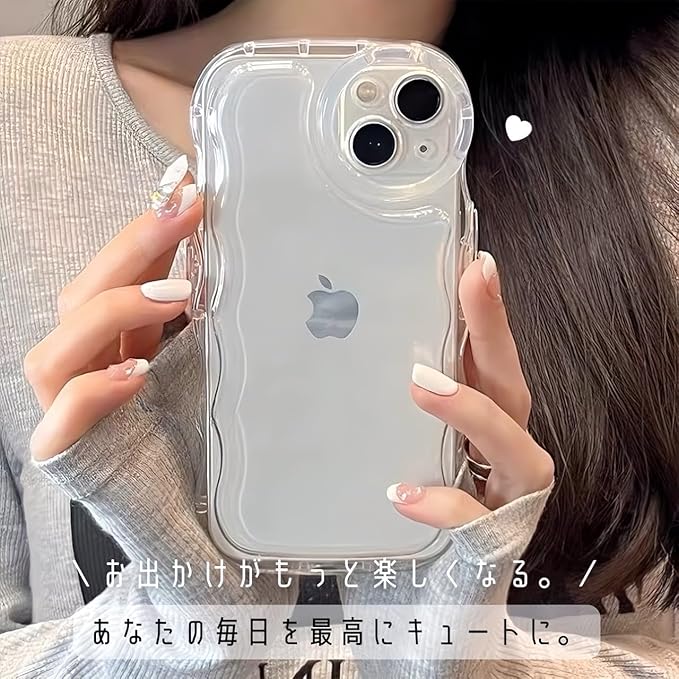saymi's クリア ウェーブ おしゃれ 韓国 iPhone13 ケース アクスタ収納 推し活にぴったり 手にフィット 透明 可愛い シンプル (iPhone13)