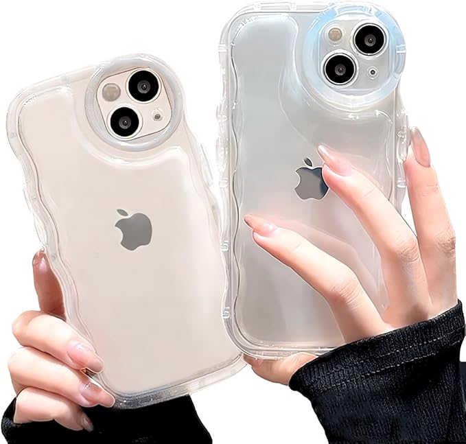 saymi's クリア ウェーブ おしゃれ 韓国 iPhone14 ケース アクスタ収納 推し活にぴったり 手にフィット 透明 可愛い シンプル (iPhone14)