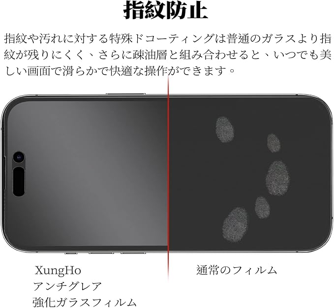 『アンチグレア』XungHo独自の反射防止コーティングの加工で、ディスプレイの表面に太陽光や蛍光灯などの反射を抑えます。視認性を向上させて画面が見えやすくなり、目の負担を軽減できます。更にサラサラ手触りで指紋の跡が残りにくく、指のすべりが滑らかでゲームをするのに適しています。