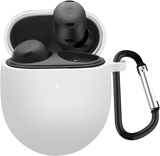 KANOYO 対応 Google Pixel Buds Pro 2 用 ケース 全面保護 シリコン保護ケース Pixel Buds Pro 2 / Pixel Buds Pro case キズ防止 耐衝撃 装着充電可能 軽量 カラビナ付き(ホワイト)
