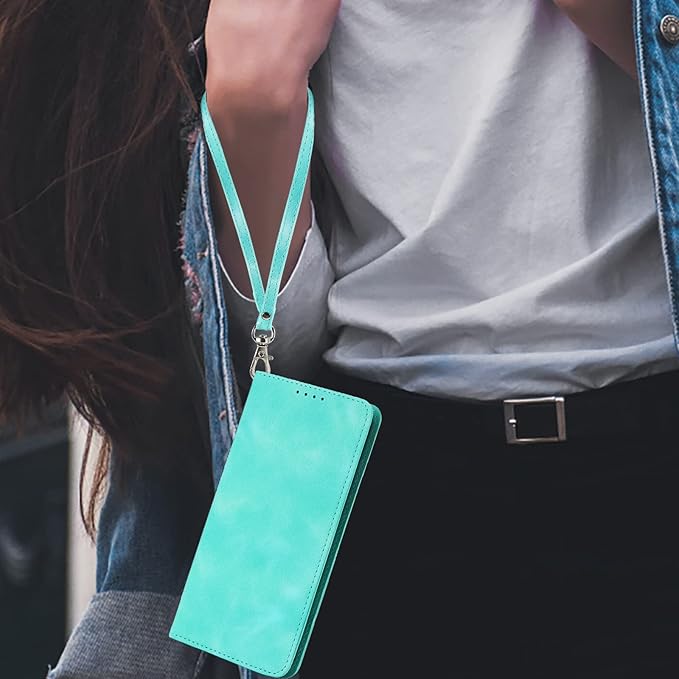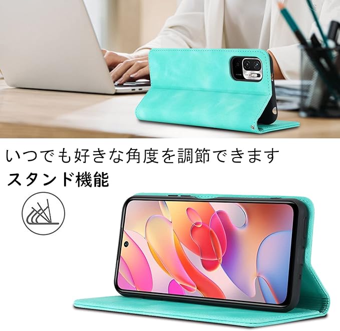 Havaya Redmi Note 10T ケース Redmi Note 10 JE ケース xig02 ケース 手帳型 ストラップ au ノート10 JE 耐衝撃 カバー docomo Xiaomi マグネット式 カード収納 SoftBank スタンド機能 レザー スエードの質感-ミントグリーン