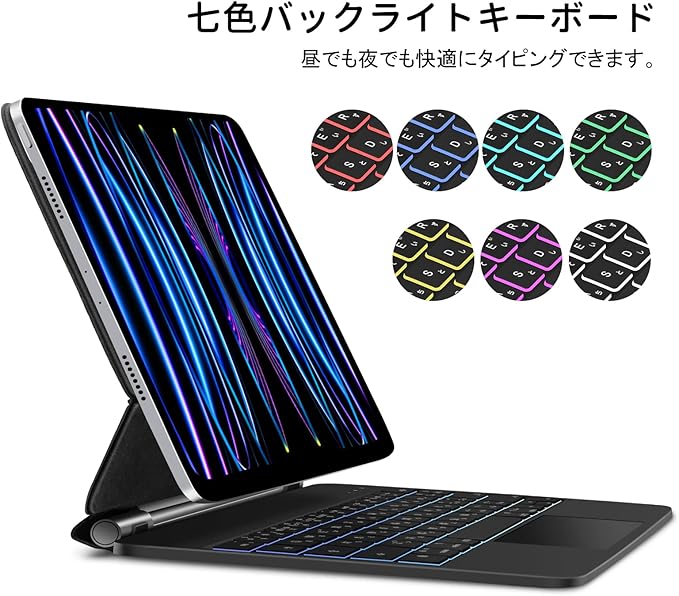 マジックキーボード GOOJODOQ 2024 iPad Air6(M2) 11inch対応スマートキーボード iPad Pro 11第1/2/3/4世代/iPad Air第4/5/6世代通用 トラックパッド付きキーボード ケース 7色バックライト付き 磁気吸着ケース 日本語配列キーボード 日本語説明書 ブラック