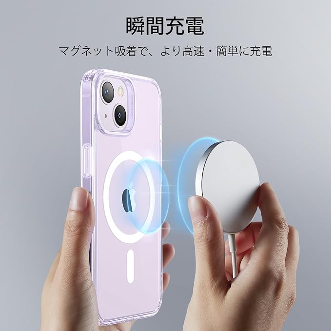 【米軍MIL規格・Magsafe対応】ESR iPhone 14 ケース iPhone 13 ケース 傷に強い背面 ワイヤレス充電 ストラップホール付き iPhone 14ケース iPhone 13ケース いphone14 ケース iphone13 ケース 用 HaloLock搭載 ハイブリッド磁気ケース 6.1インチ ライトパープル Classic Series