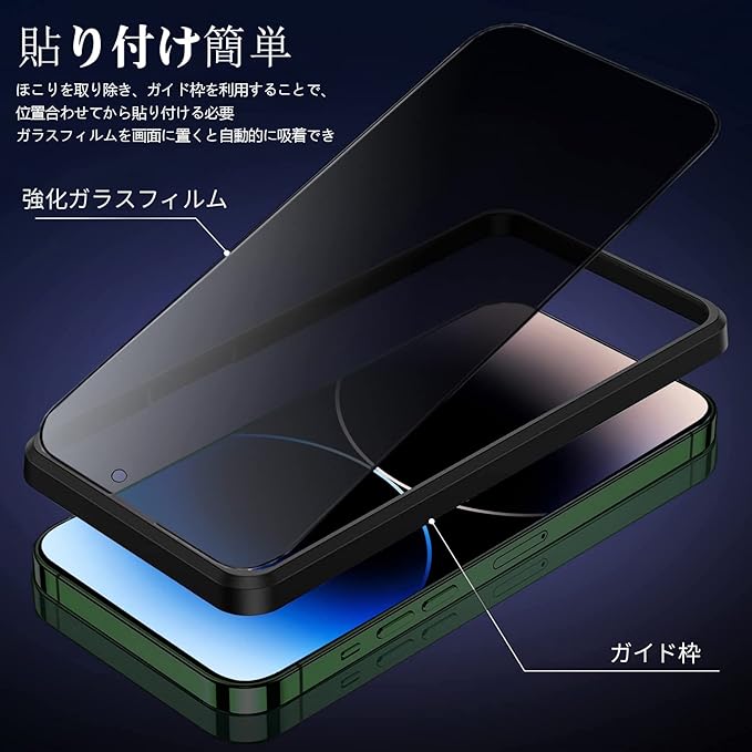 【2枚入り】28°覗き見防止 iPhone 14 Pro 強化ガラスフィルム 液晶画面 6.1インチ 気泡防止 硬度9H 滑らかなタッチ操作 指紋付着防止 飛散防止 ガイド枠付き 貼り付けは簡単