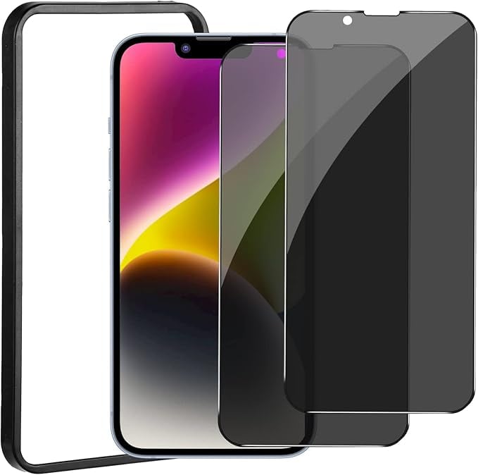 【2枚セット】iPhone14 ガラスフィルム 覗き見防止 フィルム【ガイド枠付き】iPhone 14 保護フィルム のぞき見防止 アイフォン14 強化ガラス 液晶 保護 フィルム【6.1インチ/貼り付け簡単】