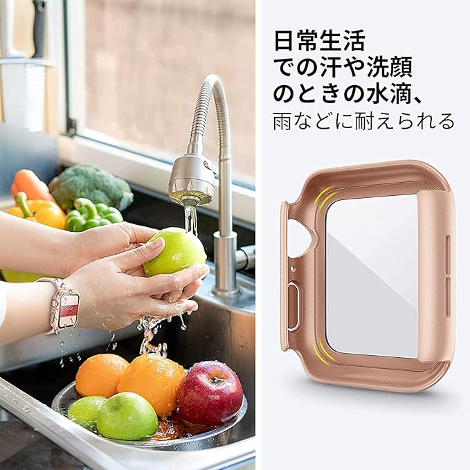 DIKESHGU for Apple Watch防水ケース series6/SE/5/4 44mm/40mm アップルウォッチ保護カバー ガラスフィルム 一体型 PC素材 タッチ感良好 全面保護 装着簡単 耐衝撃 高透過率 指紋防止 傷防止 (ローズゴー