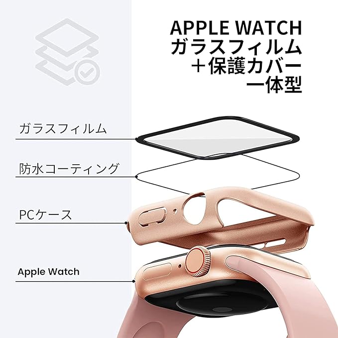 【高級感が溢れるデザイン&装着簡単】 Apple Watchガラスフィルム+Apple Watch保護カバーの融合された革新的な一体型デザイン。取付け道具不要、本体の上から嵌めるだけで楽に装着できます。従来のフィルム貼りの手間も省けます。