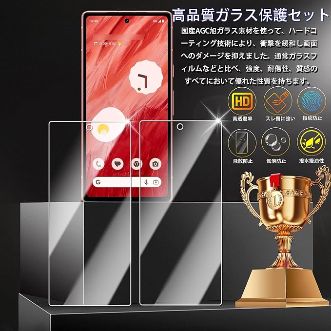 HKKAIS pixel 7a ガラスフィルム【2 枚セット】 ガイド枠付日本製硝子採用 Google Pixel 7a 用 ガラスフィルム 強化 ガラス 液晶画面 グーグルピクセル7a 保護フィルム