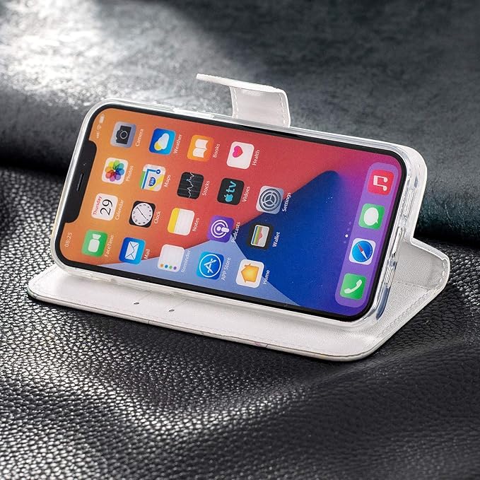 カード収納ポケット付き、定期券や、クレジットカード、名刺など収納可能です。スタンド機能付きで動画鑑賞、読書などに最適