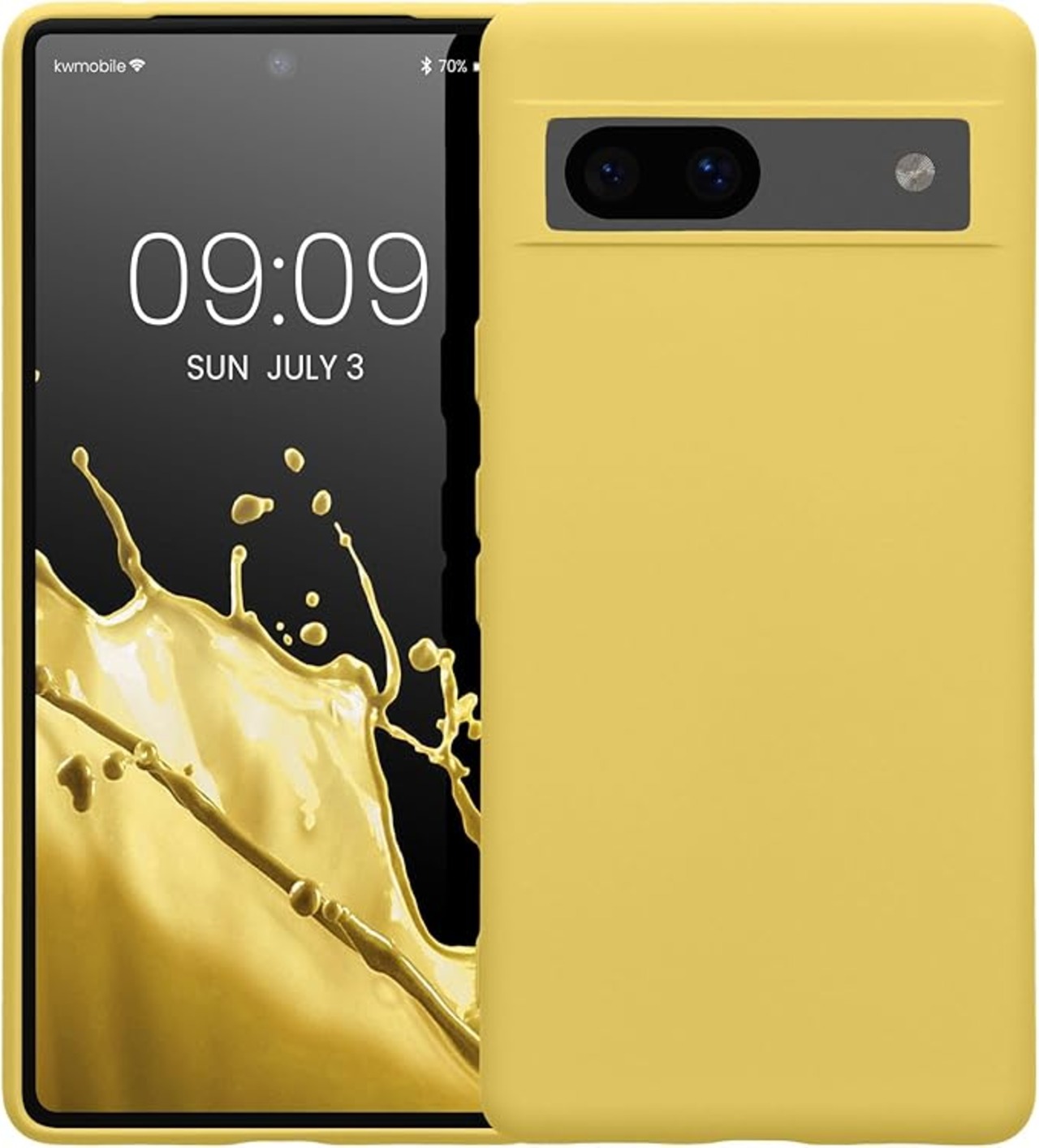 kwmobile スマホケース Google Pixel 7a対応 ケース - 極薄 TPU シリコン マイクロファイバー まばゆい イエロー