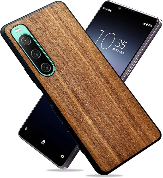 MQman Xperia10v SO-52D SOG11 ケース 木製カバー 胡桃の木 原木 素材 エクスペリア天然木 耐衝撃 ソフト クルミ ワイヤレス充電対応 (Xperia 10 V)