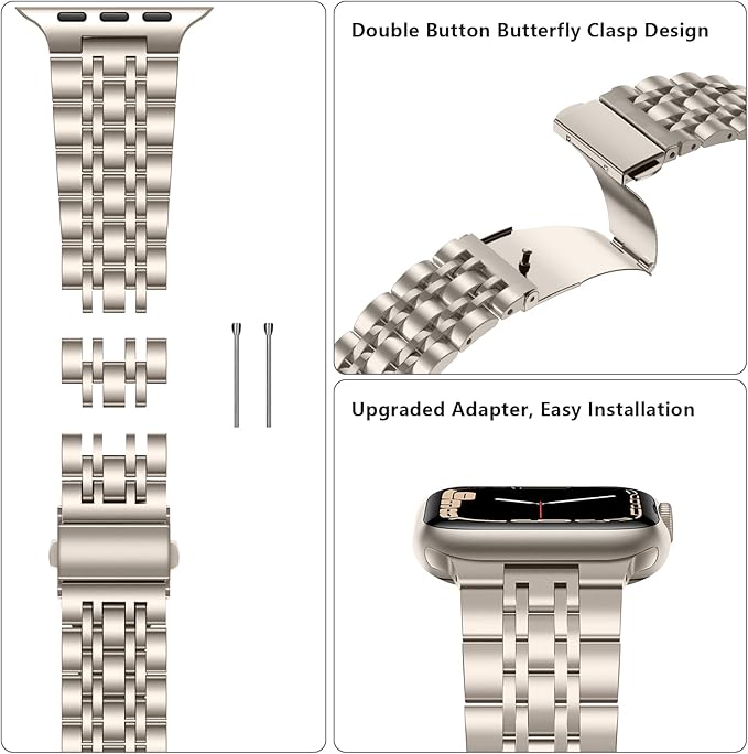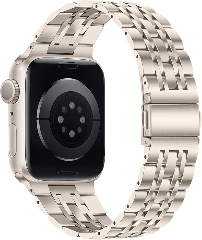 スポーツ バンド と互換性のある Apple Watch バンド42mm(シリーズ 10) 41mm 40mm 38mm, プレミアムステンレススチールメタル交換バンドコンパチブル iWatch Ultra 2 Ultra シリーズ 10 9 8 7 6 5 4 3 2 1 SE に対応 男女兼用(スターライト)