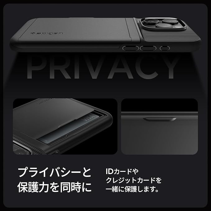 Spigen 【創業18年の技術力】 iPhone 15 Pro Max ケース カード収納 米軍MIL規格 耐衝撃 パスケース スリム・アーマーCS ACS06589 (ブラック)