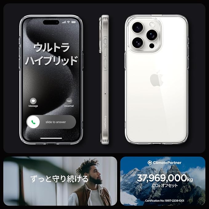 【17年社歴の技術力】Spigen iPhone 15 Pro ケース クリア 耐衝撃 米軍MIL規格取得 ストラップホール 黄変抑制 透明 TPU バンパーケース 2重構造 擦り傷防止 ワイヤレス充電対応 ウルトラ・ハイブリ