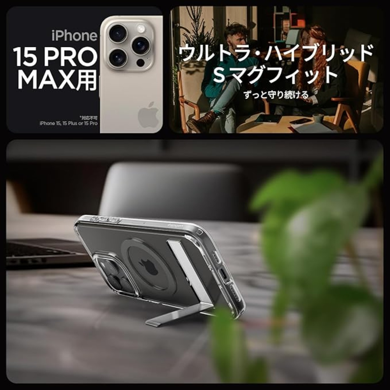 Spigen 【創業18年の技術力】 iPhone 15 Pro Max ケース クリア MagSafe対応 スタンド付き ウルトラ・ハイブリッドS・マグフィット ACS06584 (グラファイト)