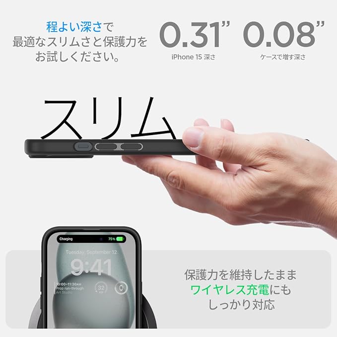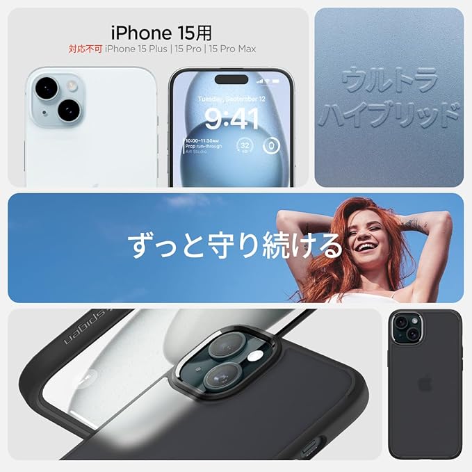 Spigen 【創業18年の技術力】 iPhone 15 ケース クリア 耐衝撃 半透明 さらさら 米軍MIL規格取得 指紋防止 ストラップホール 黄変抑制 透明 TPU バンパーケース 2重構造 レンズ保護 擦り傷防止 ワイヤレス充電対応 ウルトラ・ハイブリッド ACS06797 (フロスト・ブラック)