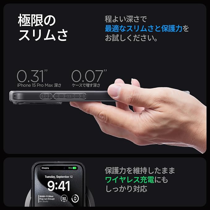 Spigen 【創業18年の技術力】 iPhone 15 Pro Max ケース クリア MagSafe対応 米軍MIL規格 ウルトラ・ハイブリッド・マグフィット ACS06582 (ゼロ・ワン)