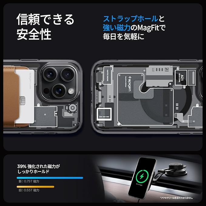【MagSafe対応】 マグネットが内蔵されており、MagSafe対応充電器および各種MagSafe専用アクセサリーが誤差なくくっつきます。
