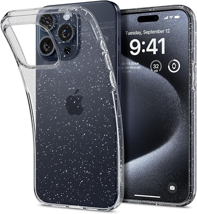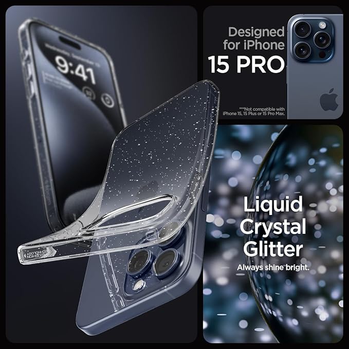 Spigen 【創業18年の技術力】 iPhone 15 Pro ケース クリア キラキラ ラメ入り 薄型 耐衝撃 軽量 米軍MIL規格取得 黄変抑制 レンズ保護 指紋防止 擦り傷防止 ワイヤレス充電対応 リキッド・クリスタル ACS06701 (クリスタル・クオーツ)