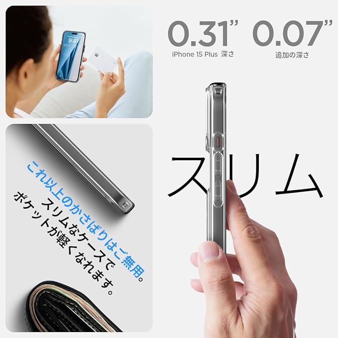 Spigen 【創業18年の技術力】 iPhone 15 Plus ケース カード収納 クリア 米軍MIL規格 薄型 クリスタル・スロット ACS06667 (クリスタル・クリア)