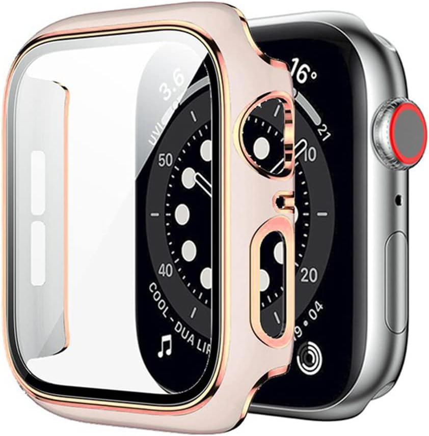 AriRi アップルウォッチ カバー ケース ポリカーボネート ライン入りデザイン 40mm 41mm 44mm 45mm (41mm, マッシュルーム/ローズゴールドライン)
