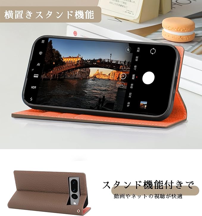 CLICSUN Google Pixel 7a 対応ケース 高級 牛本革 Pixel 7a 対応カバー 手帳型 グーグル ピクセル 7a ケース 本革 レザー カバー 全面保護 衝撃吸収 スタンド機能 ストラップ付き マグネット式 カードポケット ギフトボックス付き ブラウン