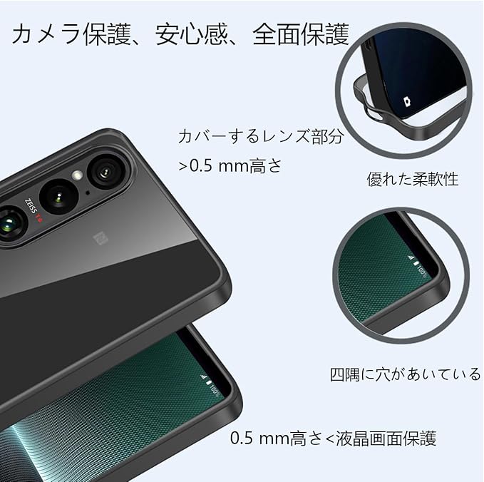 【対応機種】SONY Xperia 1 V TPU耐衝撃ケース。それぞれ違う角度でコンクリートに落下させても本体は綺麗に無傷。TPU素材の変形しにくい性質と優れた耐久性で長くご愛用いただけます、保護はより周到である。ご注意:お買い求めの機種を確認してからご購入をお願いします。