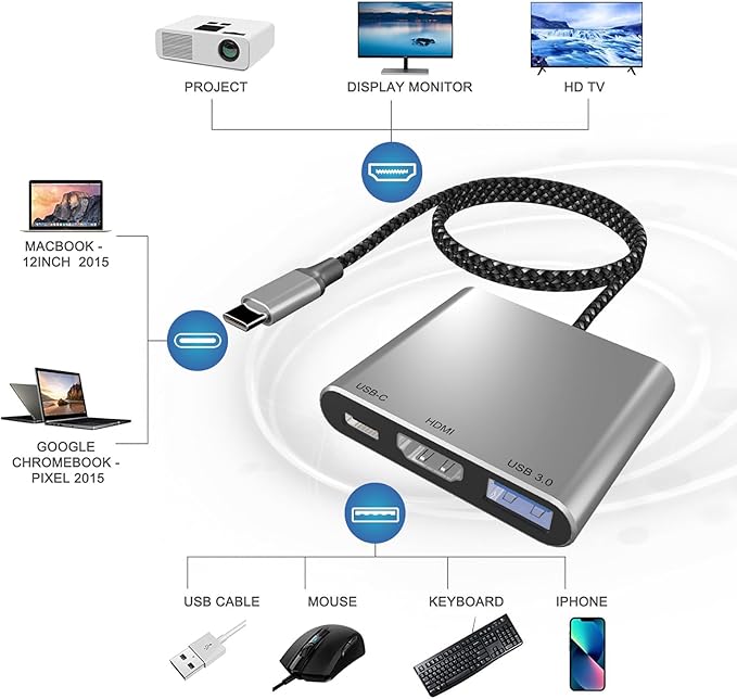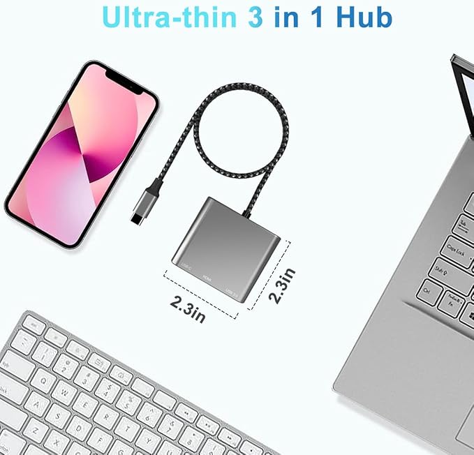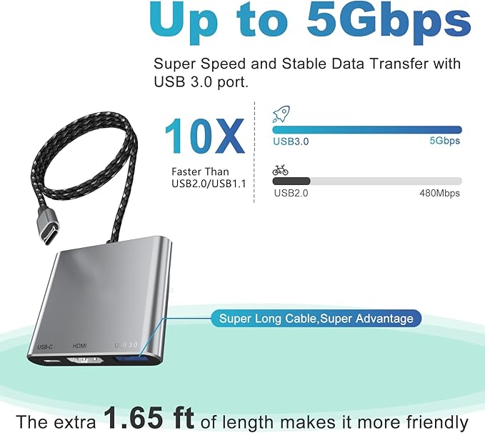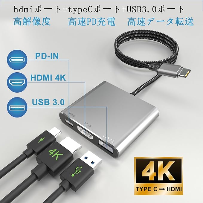 【3-in-1変換 アダプタ&多機種対応】 50cm延長コード タイプc to usb 3.0ポート×1、4K HMDI ポート×1、PD充電ポート×1を搭載しています。複数のデバイスが同時に接続された場合でも、安定した通信が可能になります。MacBook Pro/Mac Air/ChromeBook/Surface GOなど対応でき簡単な接続でご利用いただけます。使用簡単で、挿すだけですぐ使えます。USB Type-cポートが一つしかないMacbookなどに最適。