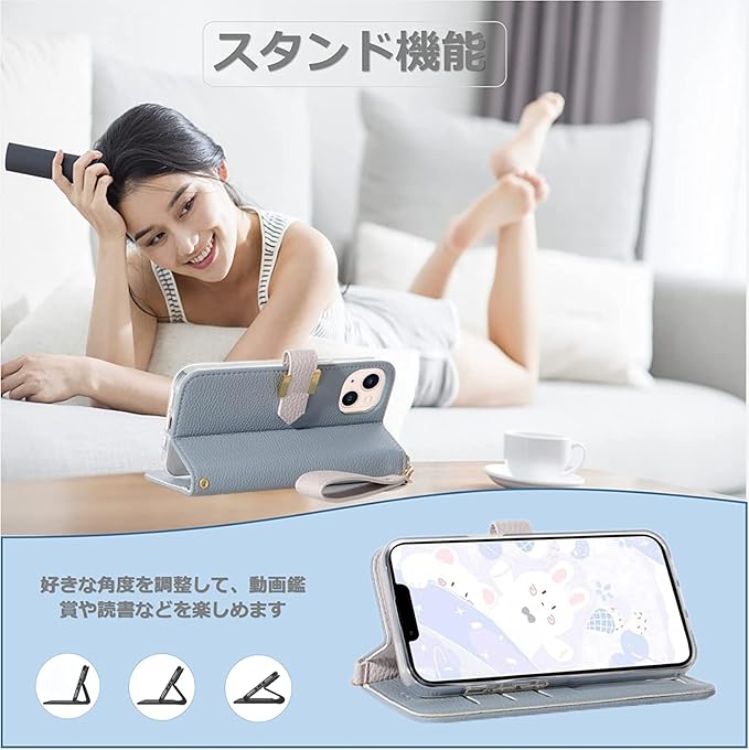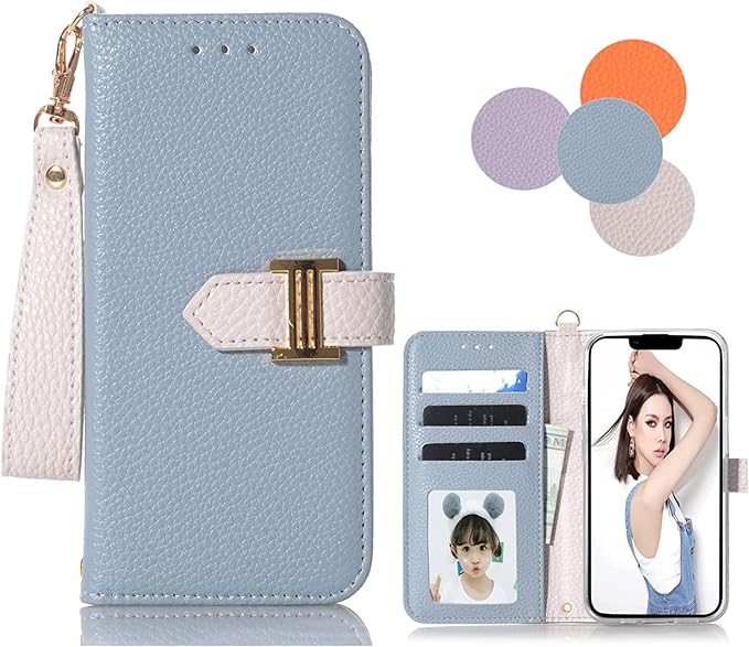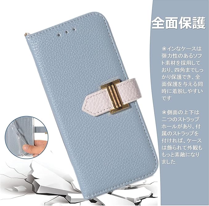 AQUOS wish3 ケース手帳型 SH-53D A302SH ケース アクオスwish3ケース かわいい おしゃれストラップ付 アクオス ウィッシュ3ケース人気 高級PUレザー SH-53D手帳型 AQUOS wish3 スマホケース カバー カード収納 財布型 人気 TPUスタンド機能 シンプル (AQUOS wish 3, ブルー)