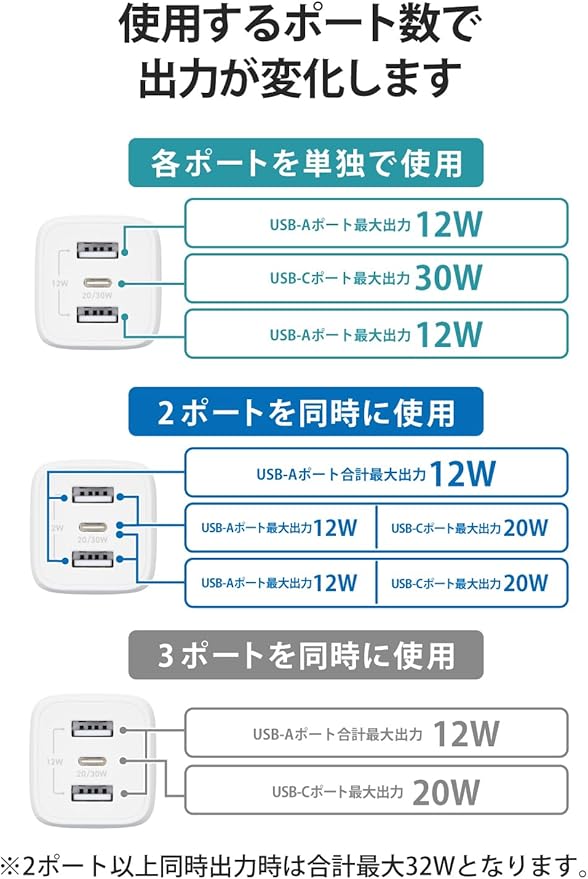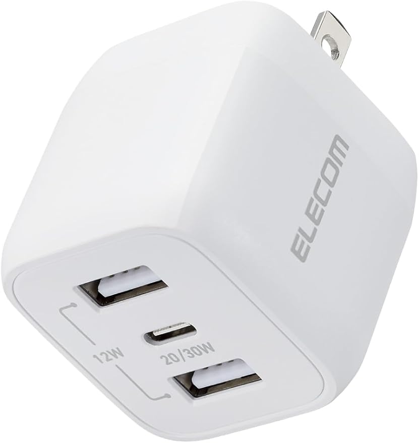 エレコム 充電器 Type-C 3ポート USB-C×1 USB-A×2 32W USB PD対応 折りたたみ式プラグ GaN採用 【 iPhone15/iPad/Macbook Air など対応】 ホワイト EC-AC4032WH