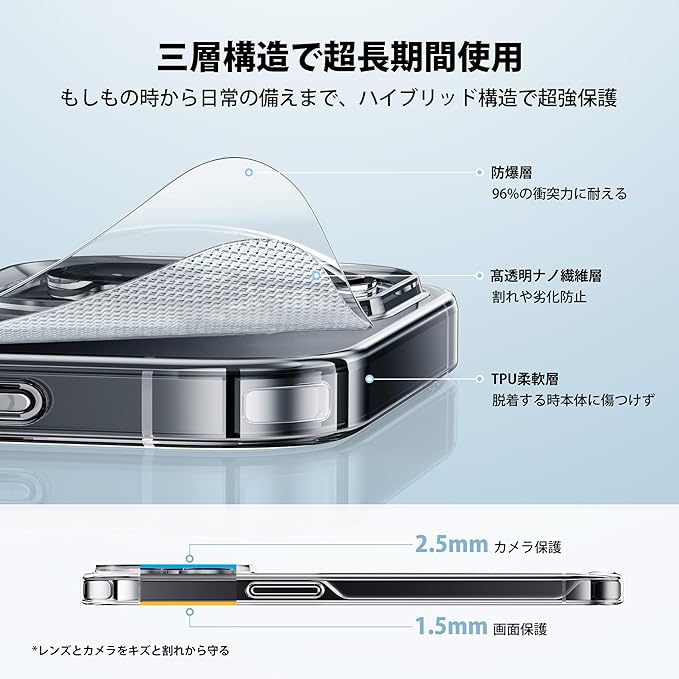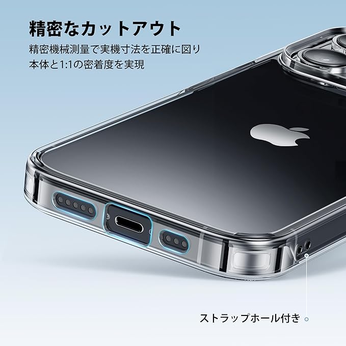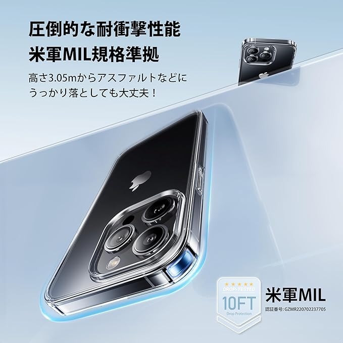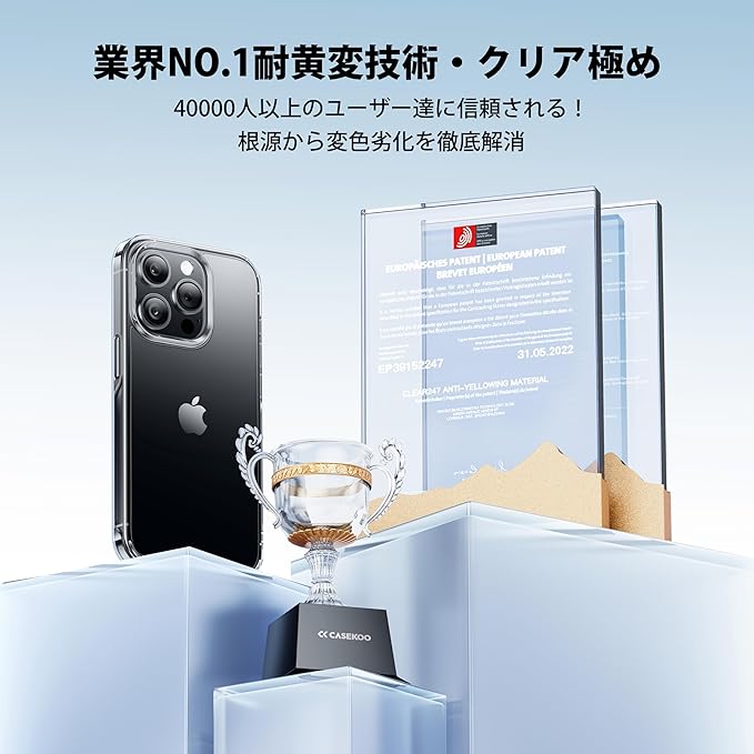 【極々透明感・2025年革新耐黄変技術】CASEKOO iPhone 15 Pro 用 ケース クリア 耐衝撃 米軍MIL規格 ストラップホール付き ワイヤレス充電対応 いPhone15Pro用ケース 6.1インチ アイフォン15Pro 用 ケース「KORI 」クリア