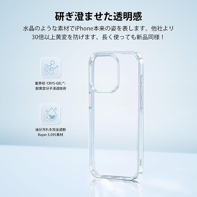 【極々透明感・本体の高級感満喫】高透明度ダイヤPC素材を厳選採用、iPhone5 Pro本来の美しさを損なわなず、高級感を思い存分楽しめる!さらに素材の芯まで最新耐黄変技術「CRYS-GEL」分子を浸透する事でクリアケースのよくある変色劣化を徹底解消!抗UV性LCS認証番号:LCS04507AR00|認証機関:LCS Compliance Testing Laboratory|認証時間:May 08, 0【対応機種:iPhone5Pro用】
