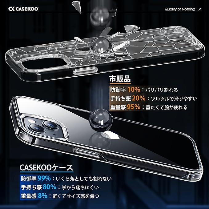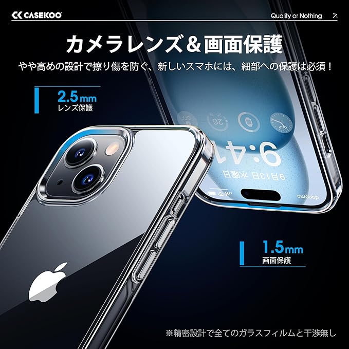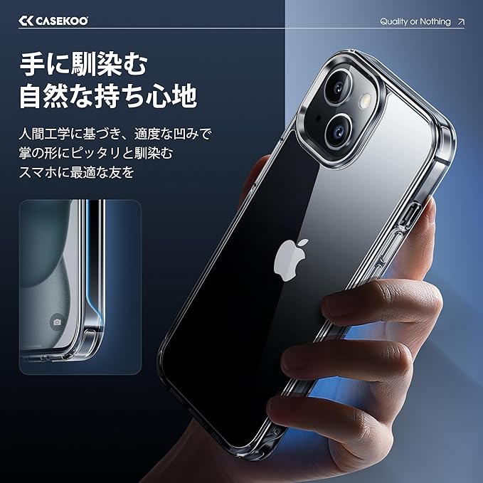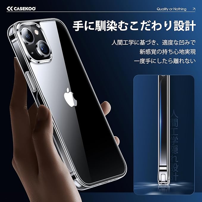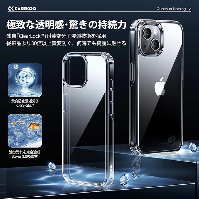 【極々透明感・2025年革新耐黄変技術】CASEKOO iPhone 15 用 ケース クリア 耐衝撃 米軍MIL規格 黄変防止 ストラップホール付き ワイヤレス充電対応 アイフォン15用ケース 6.1インチ 「KORI」(クリア)