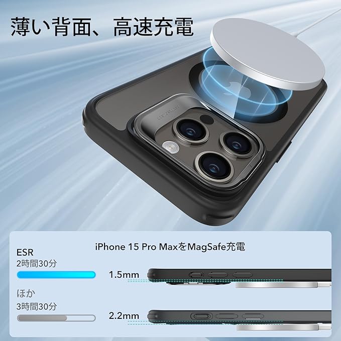 【.5mm超薄ケース・充電効率抜群】市販のあらゆるMagsafeアクセサリーに簡単対応です!ガッチリ吸着する事でスマホケースを装着したアイフォン5proを急速ワイヤレス充電できます。