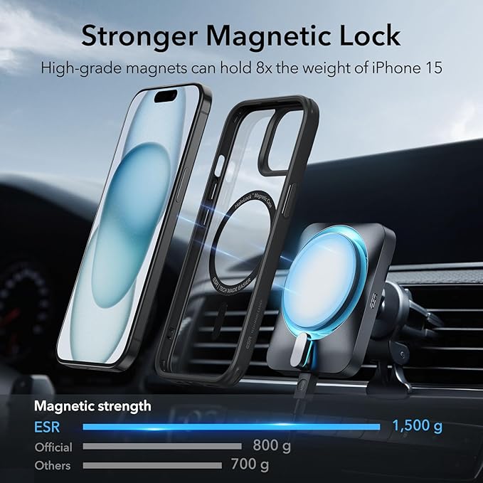【米軍MIL規格・Magsafe対応】ESR iPhone 15 ケース ワイヤレス充電対応 耐衝撃 iPhone15 ケース 傷防止 黄ばみなし アイフォン15 ケース 対応 磁気 スマホケース Classicシリーズ クリア_ブラック