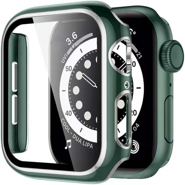AIYYXX アップルウォッチ カバー40mm 44mm 41mm 45mm対応 アップルウォッチ 本体3D曲面エッジ 超薄型 PC+ガラス素材 高透過率apple watch カバーキズ防止 簡単に取り付け・取 全面保護 apple watch ケース(40mm,光沢のグリーン&シルバー)